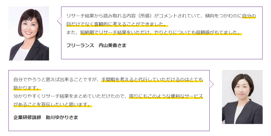 実際にサービスを利用したお客様の声は、こちらで紹介しています↓