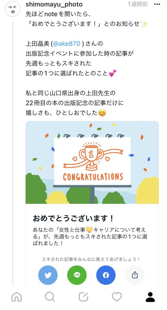 「西野亮廣エンタメ研究所」のnoteの投稿には、「インスタグラムより拡散に目が向いていて、Twitterより民度が高い」とあって、言い得て妙だなと思います。