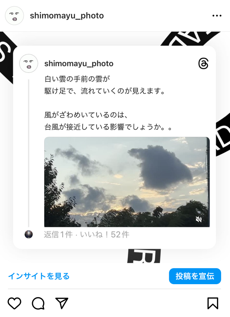 Threadsの投稿をシェアしたものが、Instagramのフィードに表示されます。