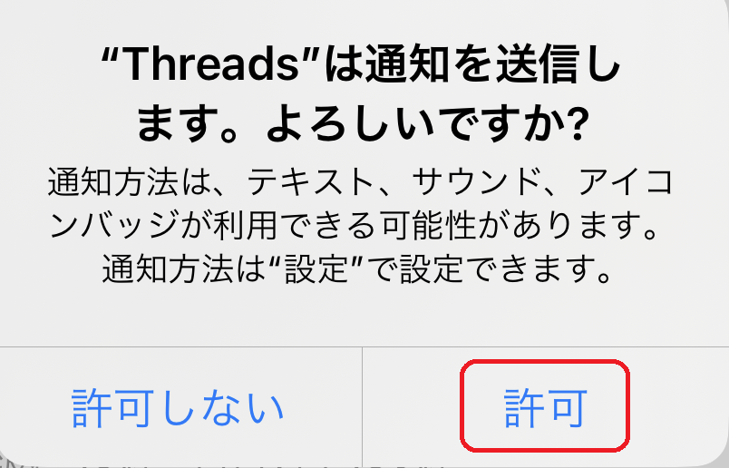 「“Threads”で写真をライブラリに追加しようとしています」とのポップアップが表示されます。